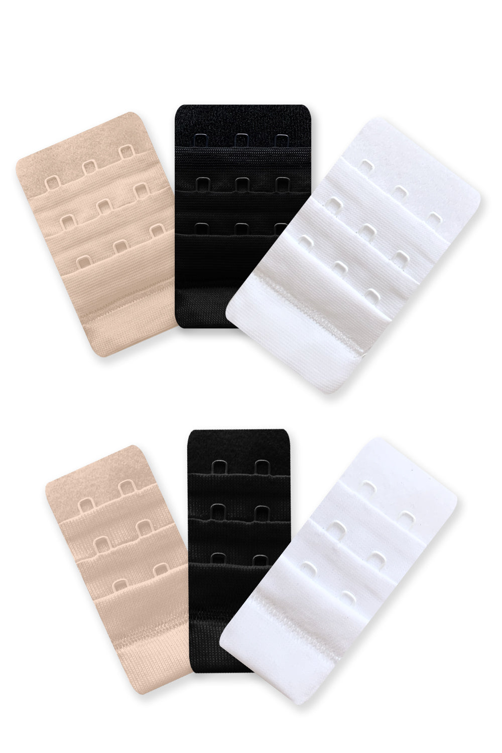 2 & 3 Hook & Eye Bra Extenders- Black Skin White (pack of 6)-BE2_3