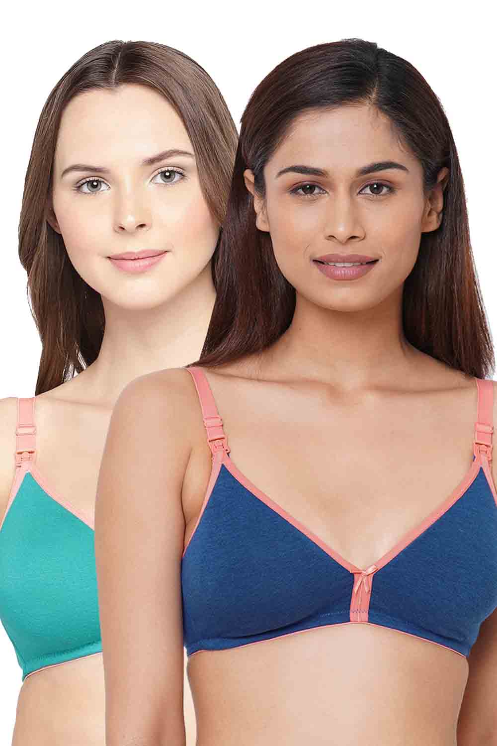 •This Inner Sense multicolor (Peacock Green/Blue) nursing bra combo has seamless, nonpadded, wire free cups. It is apt to wear under any clothing. Breastfeeding access via clasps that can be pulled down.