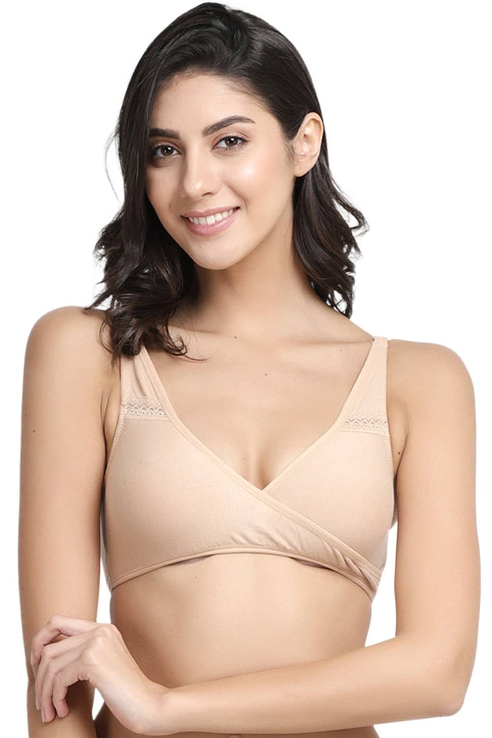 •This Inner Sense beige nursing bra is seamless, wirefree & non-padded with double layers. Breastfeeding access is via the overlapping front that can be pulled aside easily.