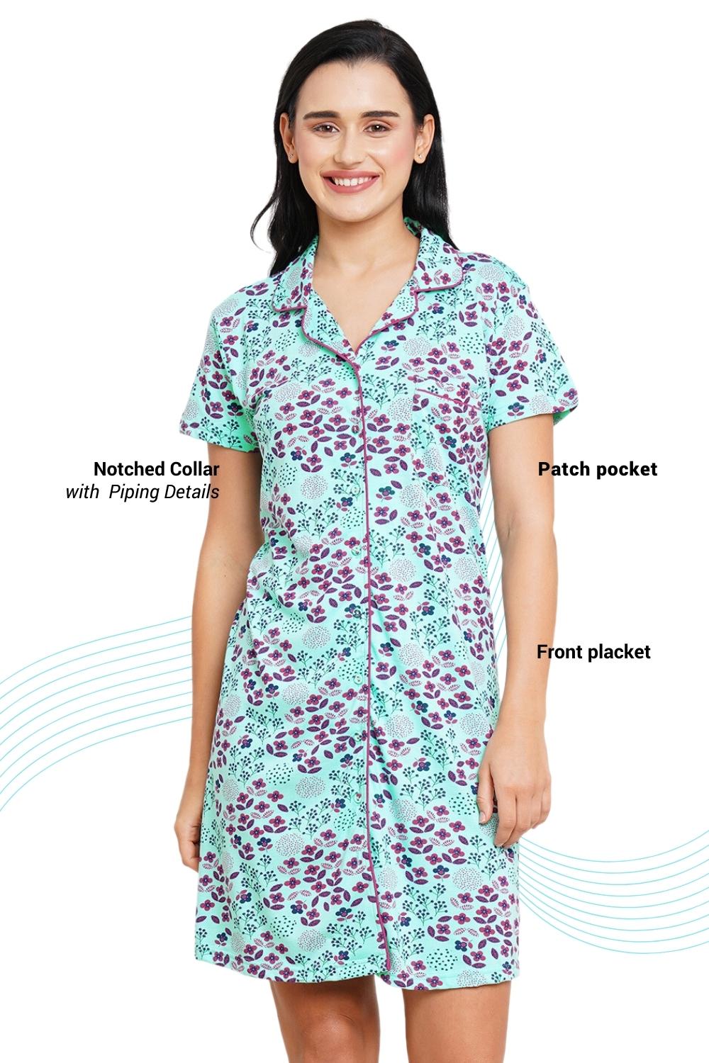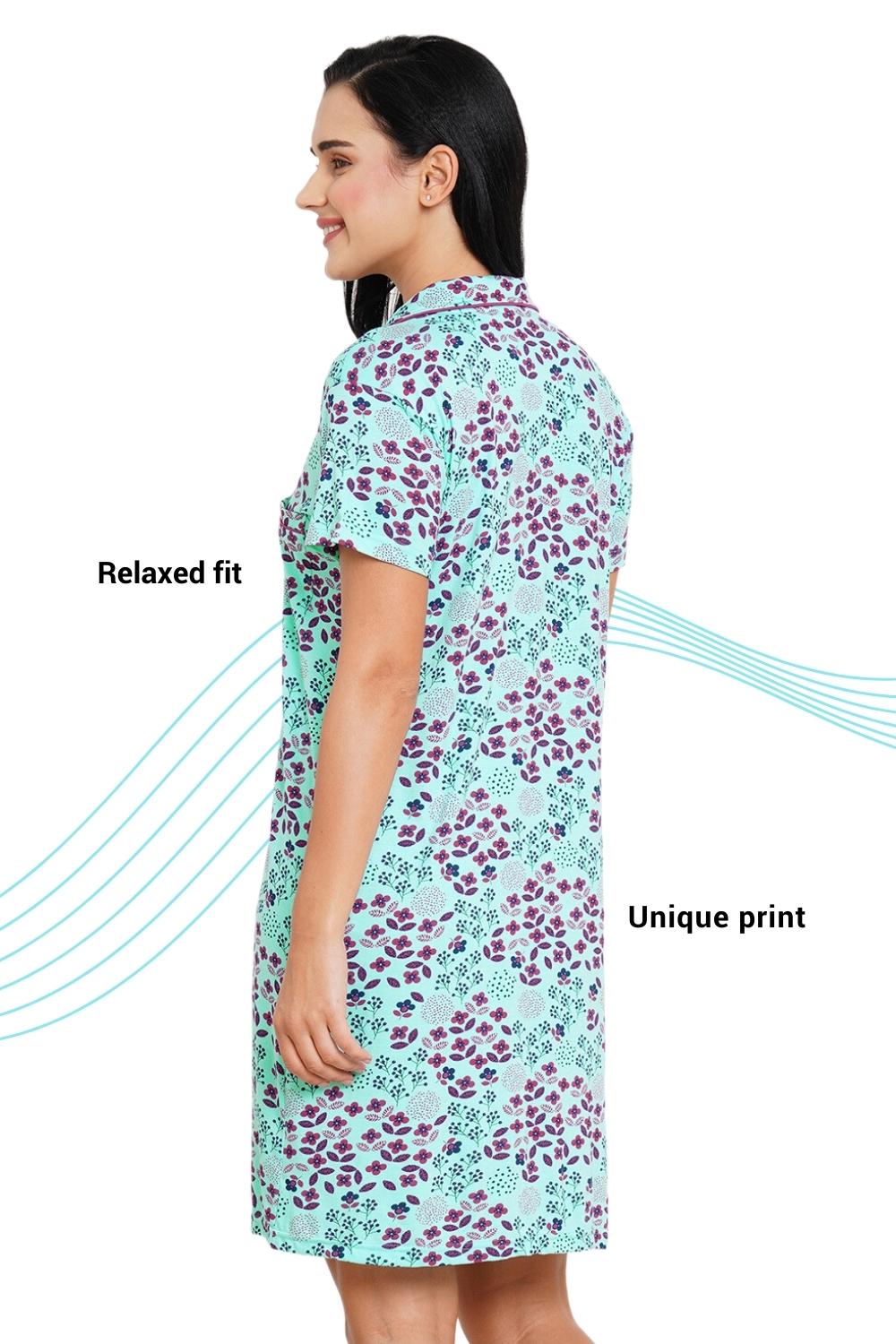 - In conclusion, the floral print sleep shirt made up of bamboo fibre and organic cotton is an excellent choice for women looking for comfort and style in their nightwear. The combination of these two materials provides a soft and breathable fabric that is gentle on the skin. The long shirt style of the sleep shirt provides coverage and freedom of movement, while the floral print design adds a touch of elegance and femininity to the overall look. It's a perfect choice for women who want to look and feel their best when they're relaxing at home