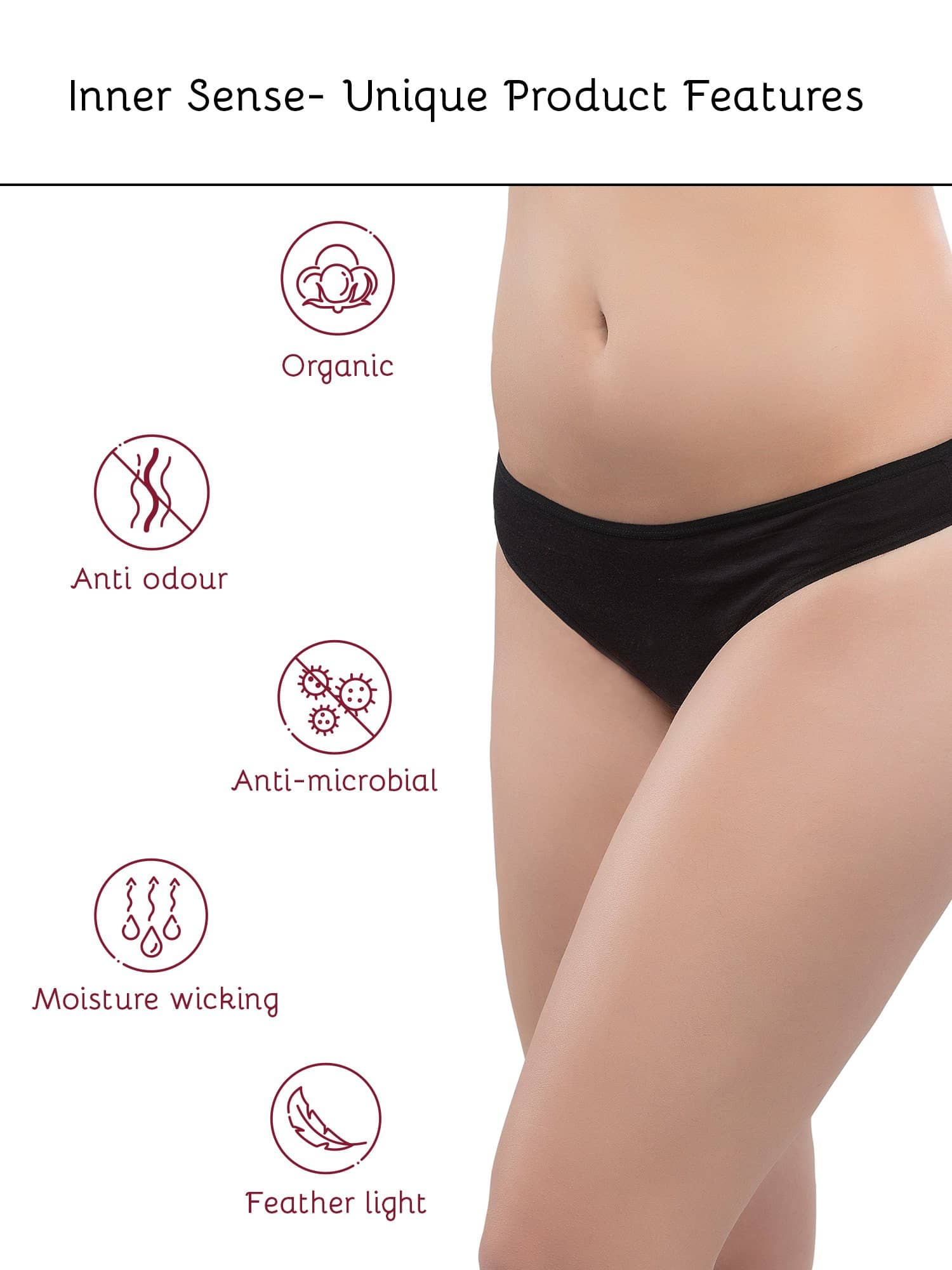 •Inner Sense beige low rise thong style with zero back coverage. Invisible under tight clothing.