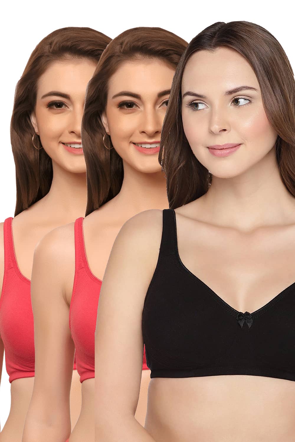 Organic Cotton Antimicrobial Seamless Side Support Bra (Pack of 3)-ISB057-B.Pink_B.Pink_Black-