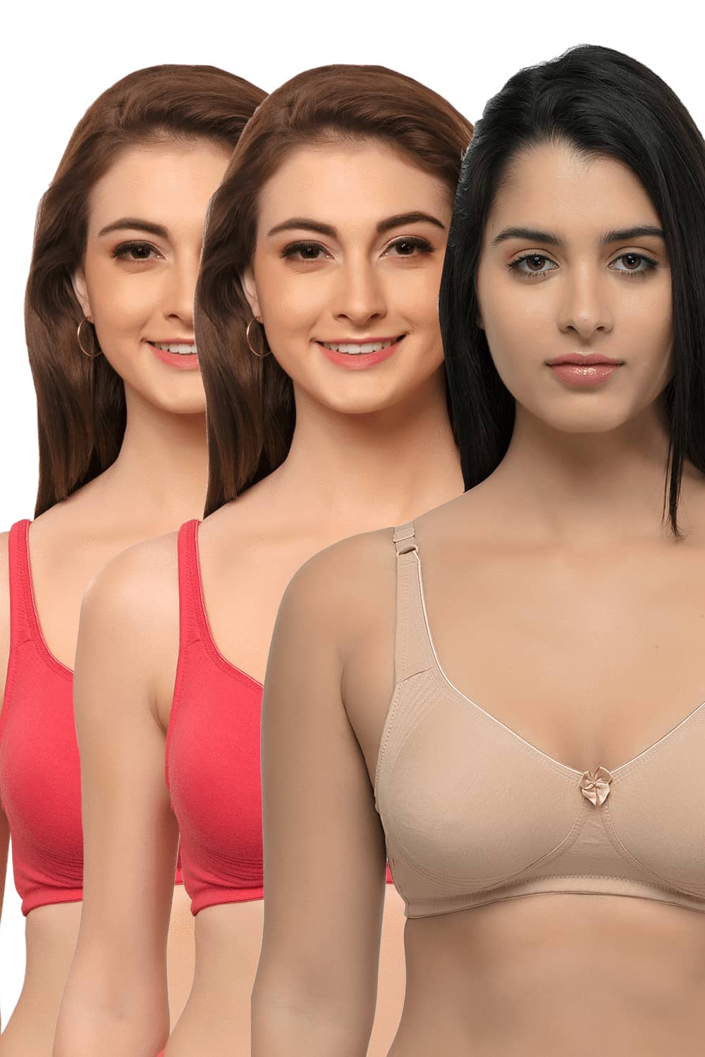 Organic Cotton Antimicrobial Seamless Side Support Bra (Pack of 3)-ISB057-B.Pink_B.Pink_Skin-