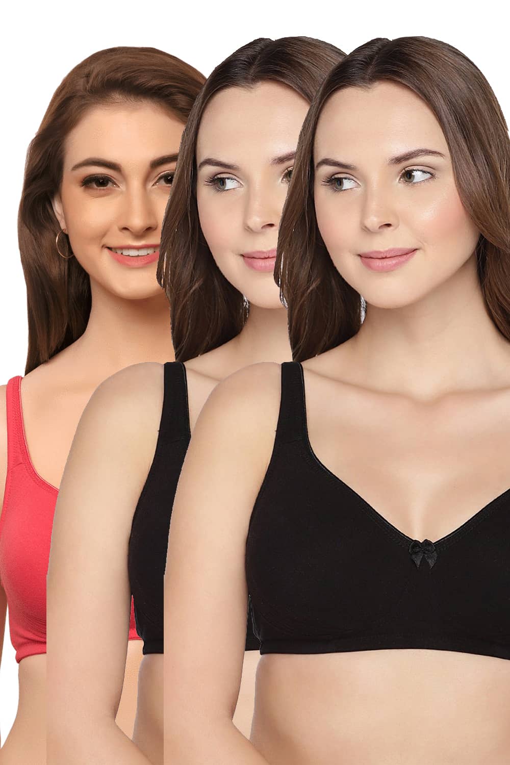 Organic Cotton Antimicrobial Seamless Side Support Bra (Pack of 3)-ISB057-Black_Black_B.Pink-