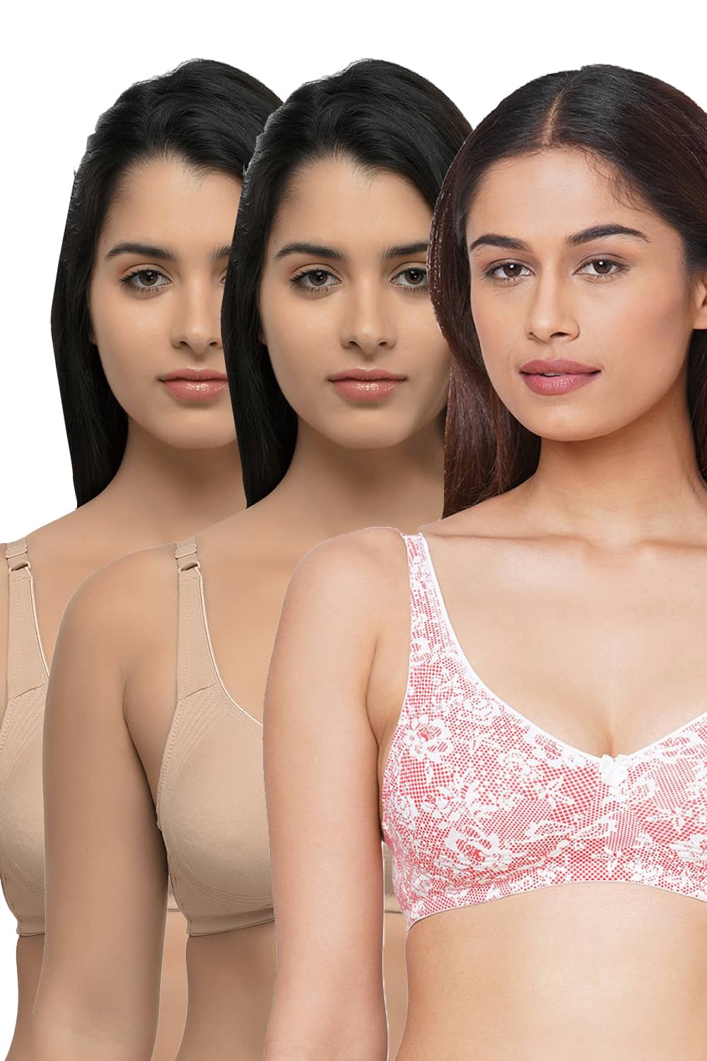 Organic Cotton Antimicrobial Seamless Side Support Bra (Pack of 3)-ISB057-Skin_Skin_Pink Lace Print-