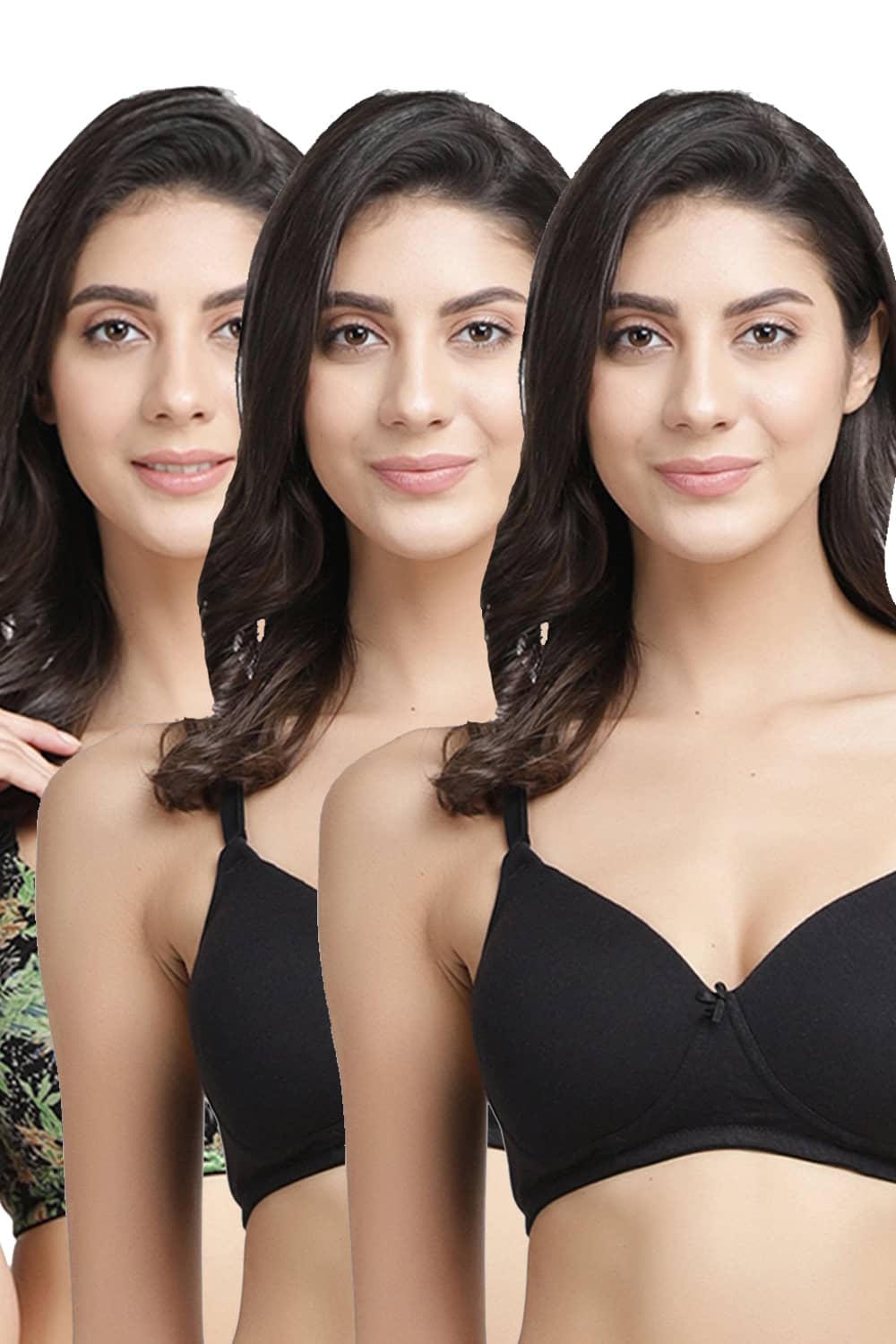 Organic Cotton Antimicrobial Wire-free Padded Bra (Pack of 3)-ISB068-Black_Black_J.Print-