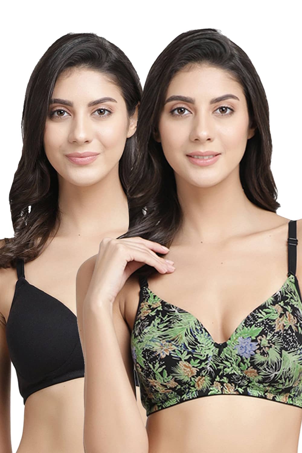 Organic Cotton Antimicrobial Wire-free Padded Bra (Pack of 2)-ISB068-Black_Jungle Print-