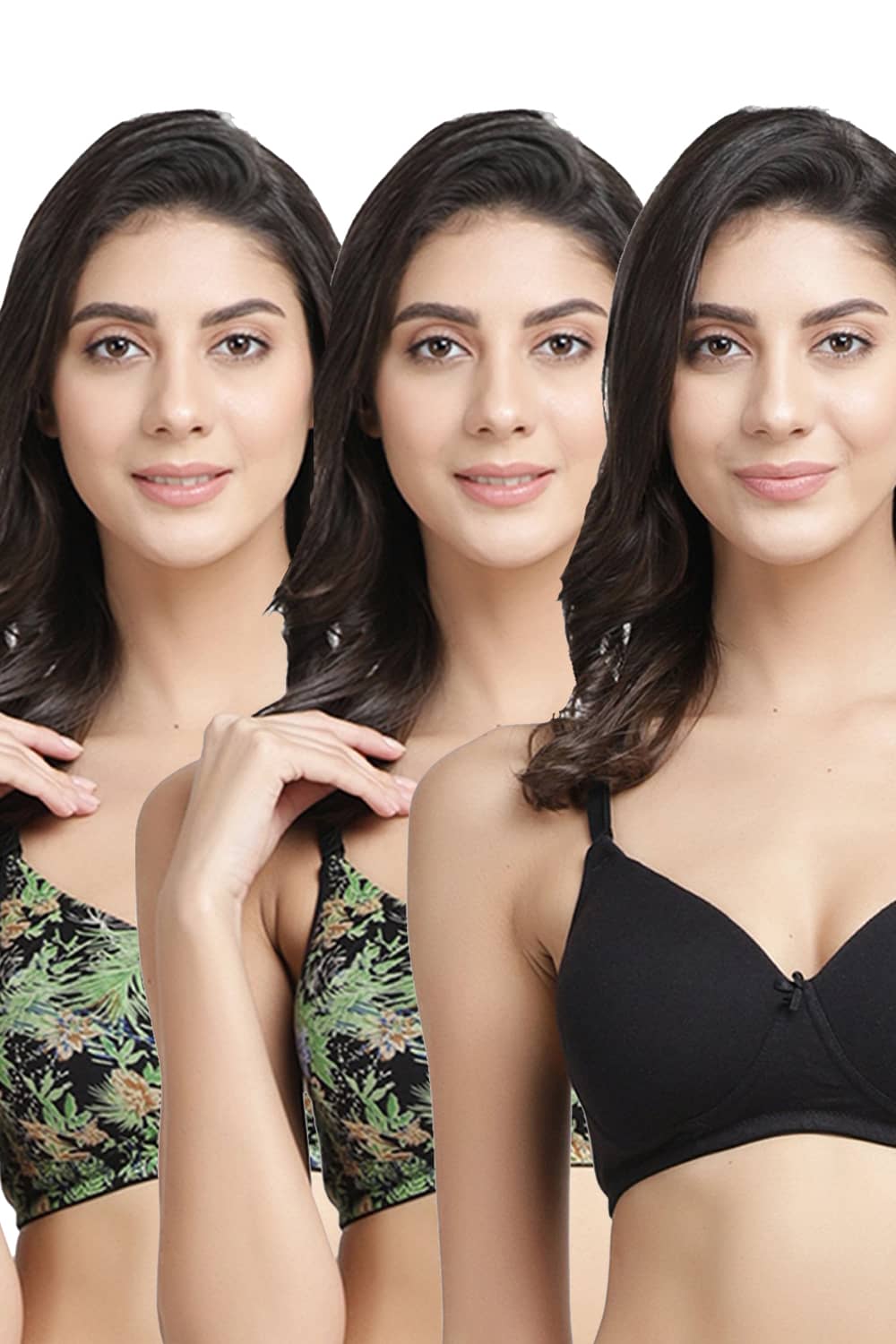 Organic Cotton Antimicrobial Wire-free Padded Bra (Pack of 3)-ISB068-J.Print_J.Print_Black-