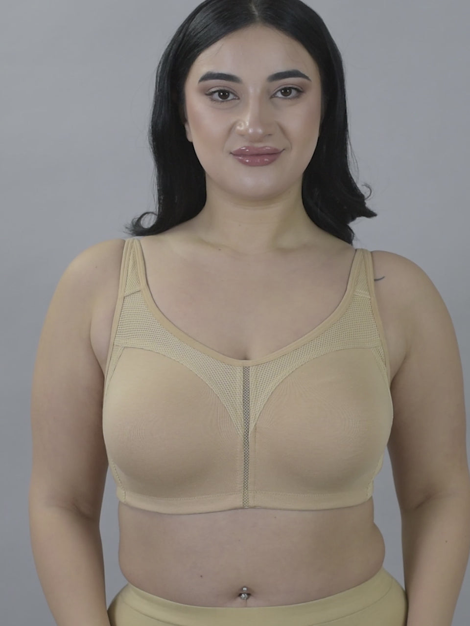 - Comfortable Fit: This cotton bra incorporates innovative mesh panelling at the front to increase breathability and day-long comfort. It offers better side coverage, a no-slip strap promise, and a no-pinch promise with soft elastics.