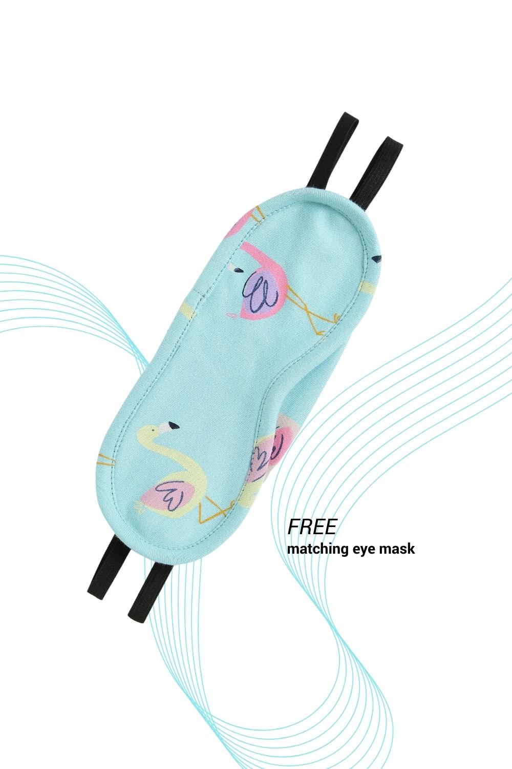 Organic Cotton Printed Night Suit with an eye mask-ISL022-Flamingo print