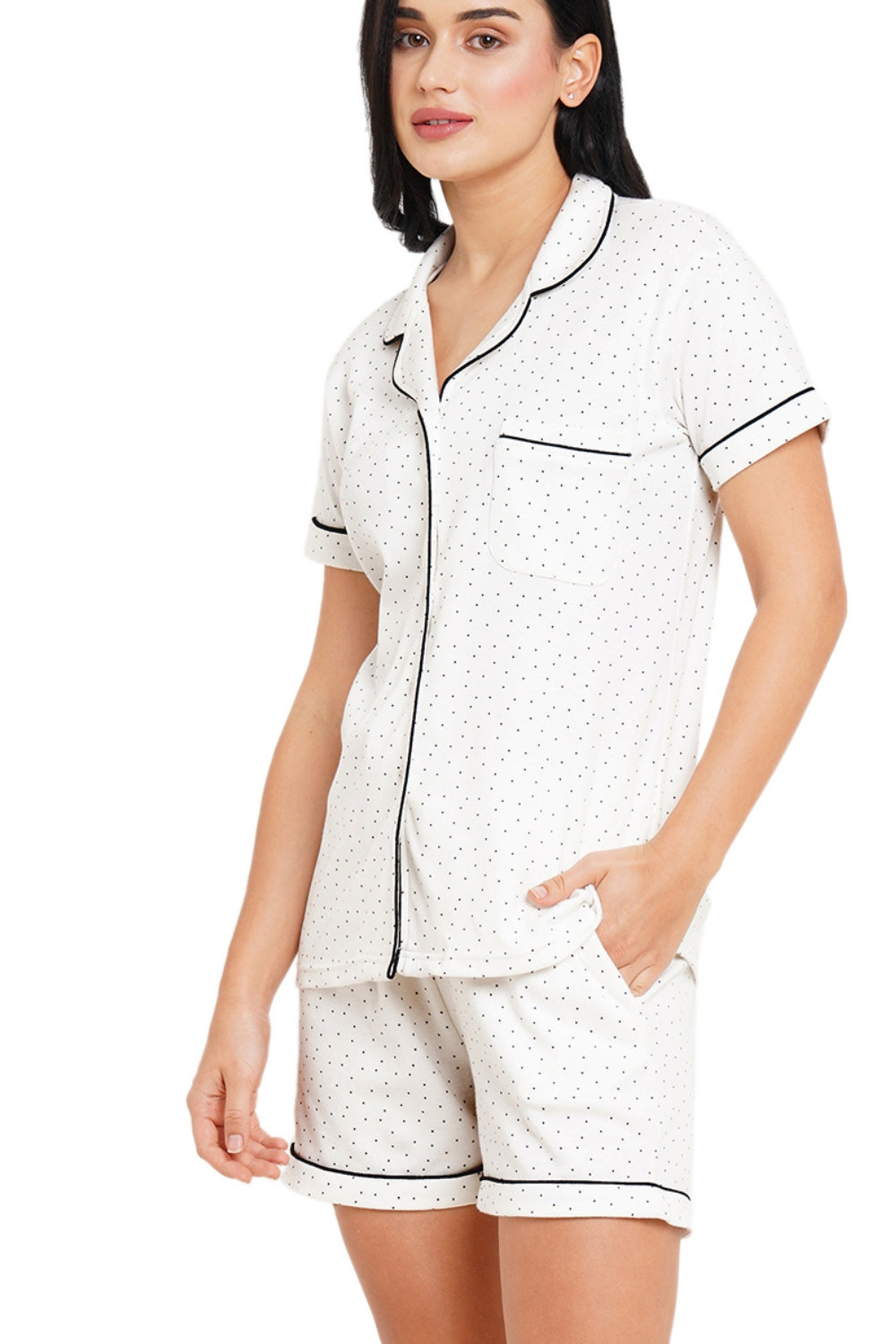 - Looking for a stylish and comfortable night suit that's eco-friendly? Check out our Polka print shorts and shirt set, made from 100% organic cotton. Not only is it good for the environment, but it's also soft, breathable, and durable, making it the perfect addition to your nightwear collection.