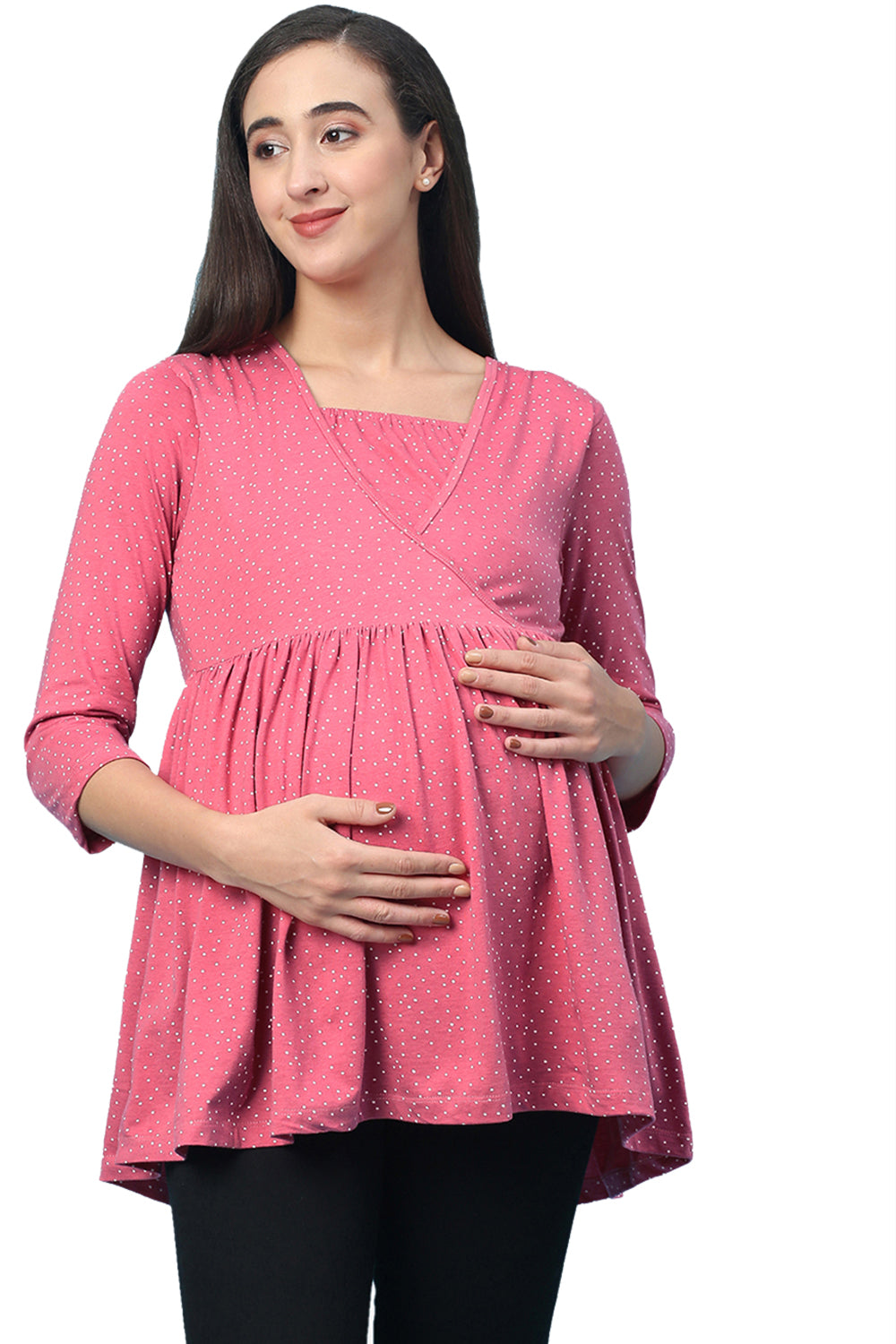 Organic Healthy Full Sleeves Maternity Top_ISML007-Desert Rose