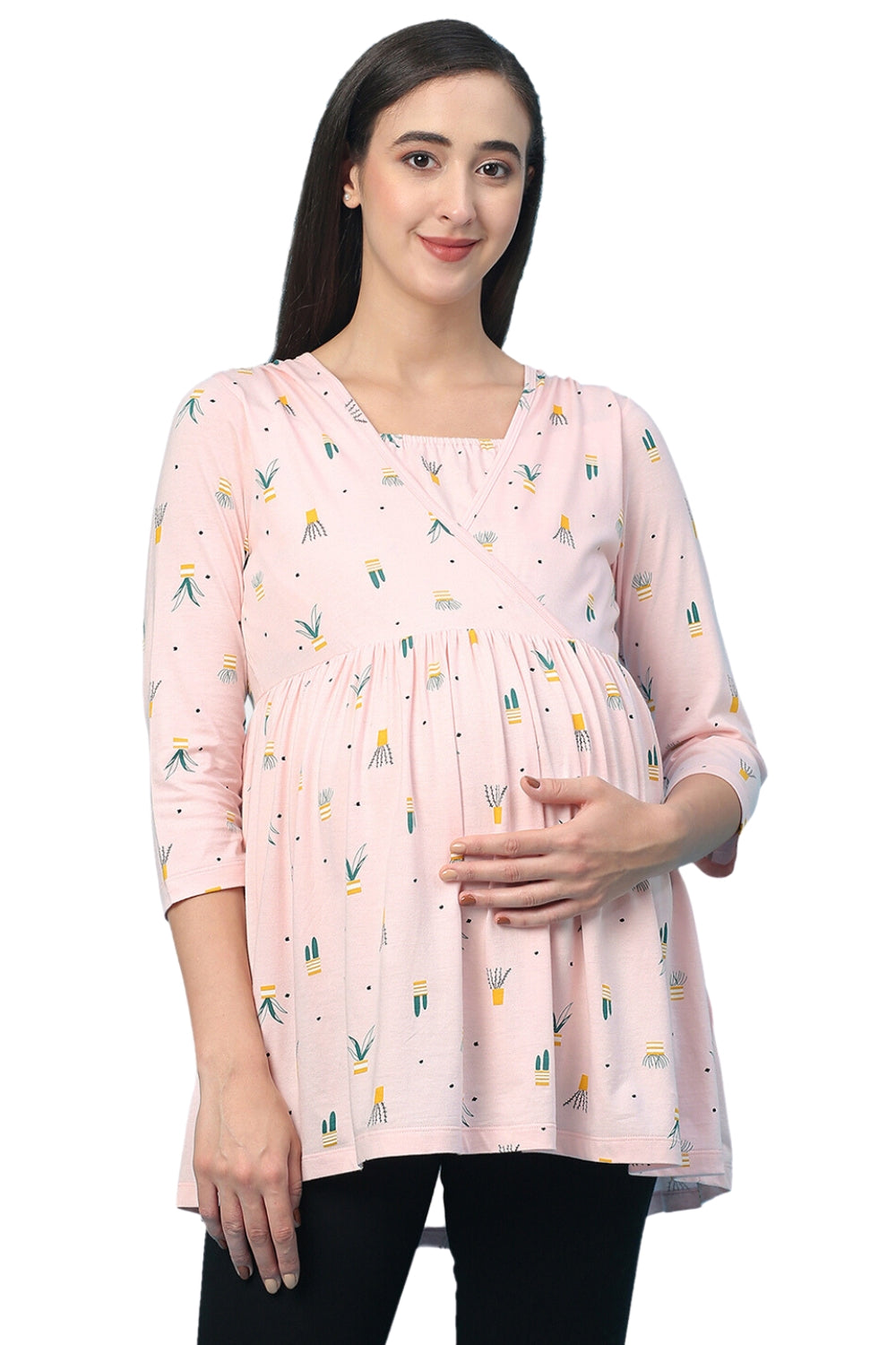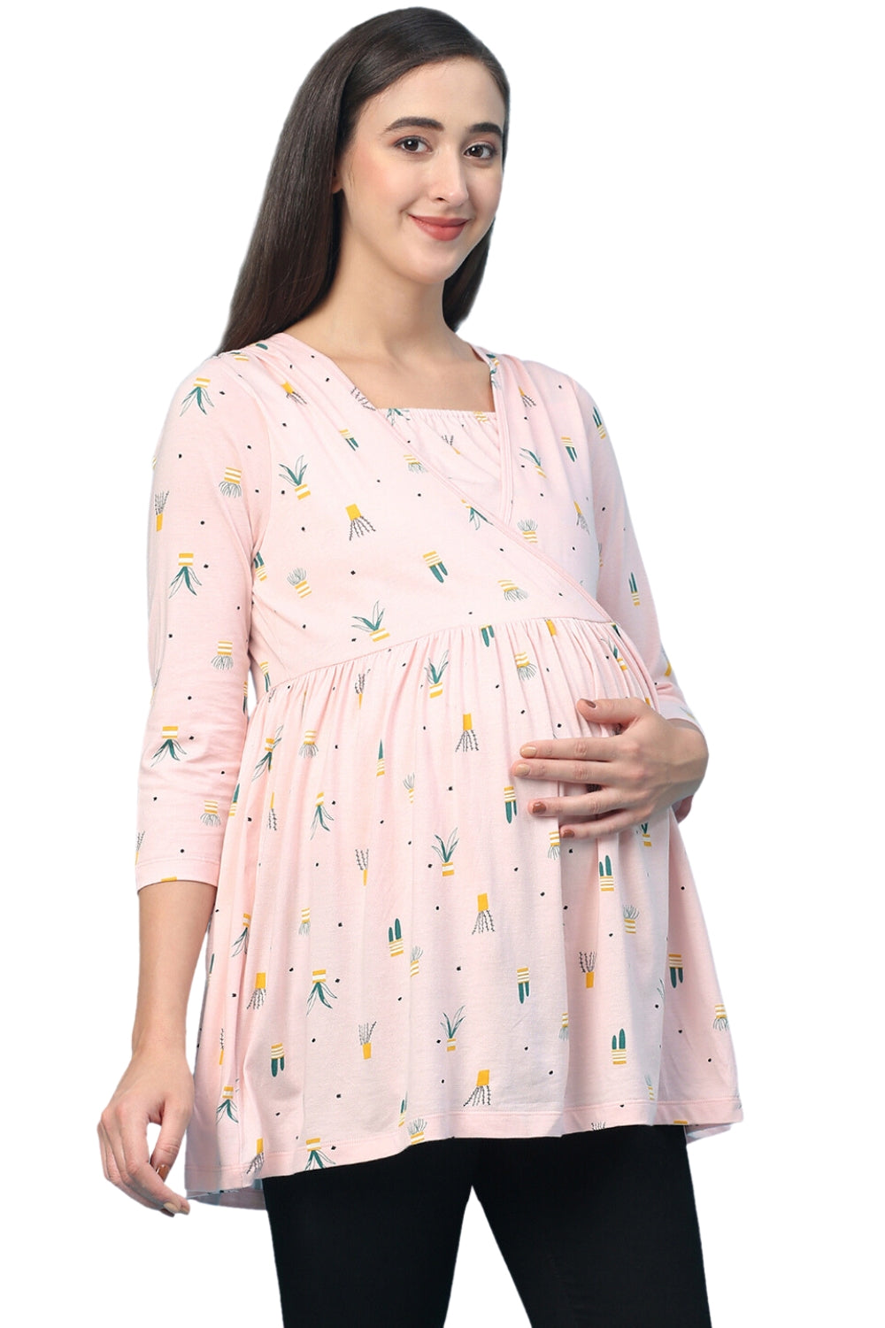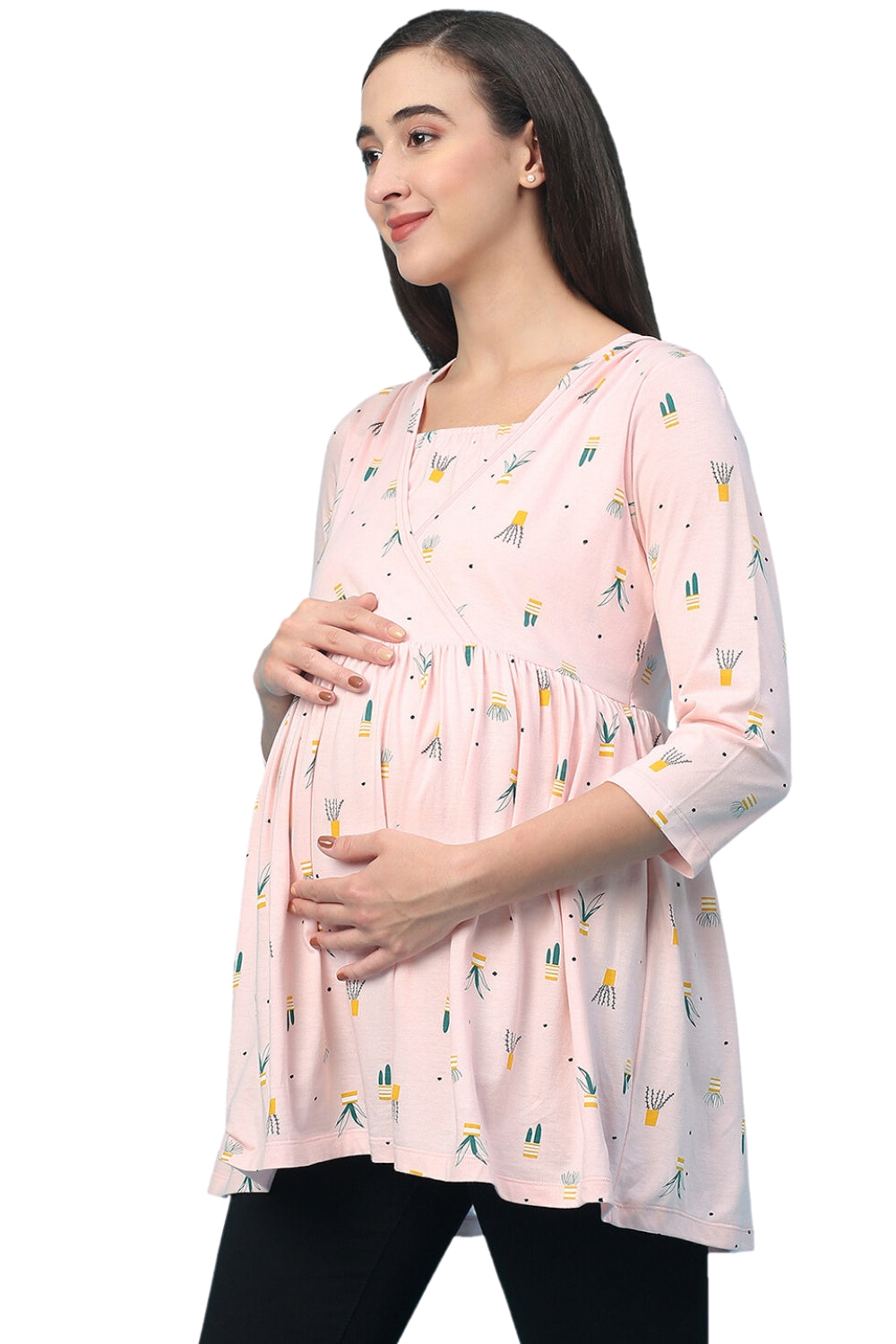 Organic Healthy Full Sleeves Maternity Top_ISML008-Pink Dogwood