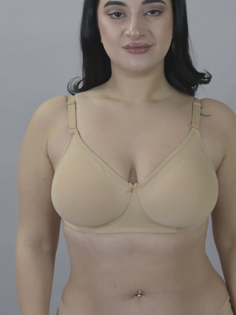 - Specifically designed for plus-size comfort, this Inner Sense beige bra features non-padded, wire-free construction with a seamless demi cup line and transparent straps, making it perfect for backless outfits.